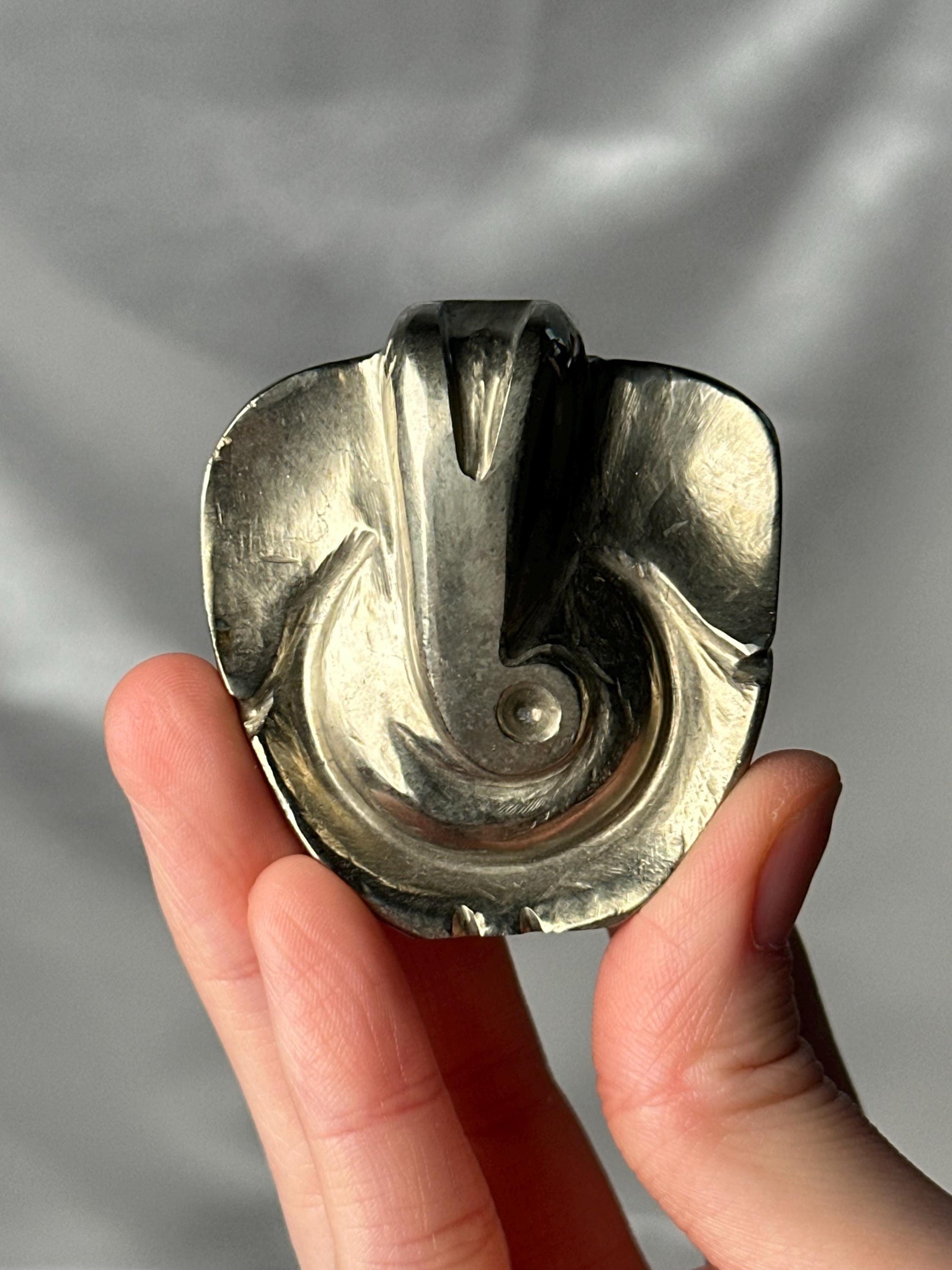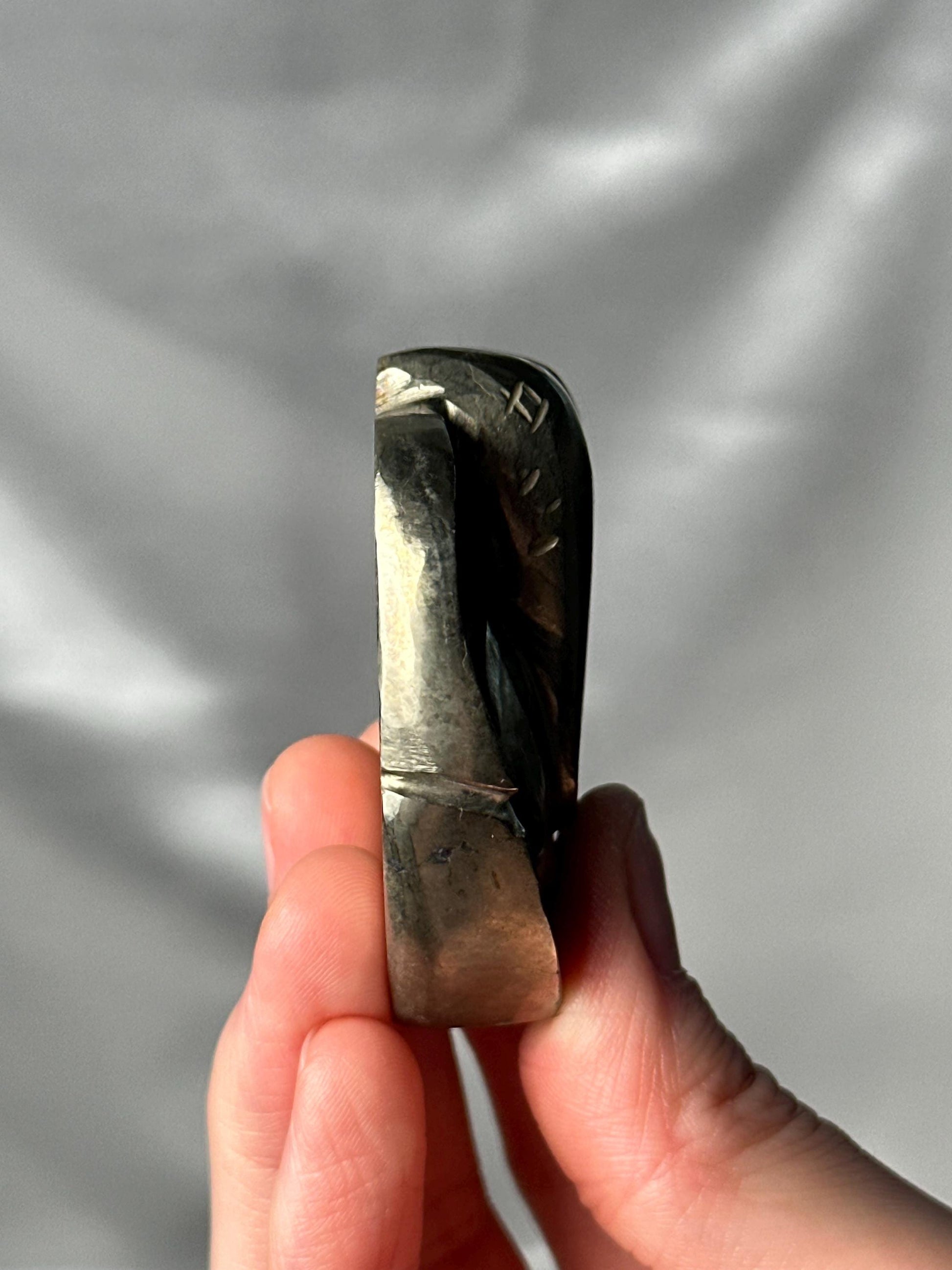 This avant-garde Ganesha palm stone carving offers a modern, artistic interpretation of the traditional Ganesha form. Smoothly polished to fit comfortably in the hand, the piece balances sculptural design with subtle stone details, making it both a tactile and visual piece.