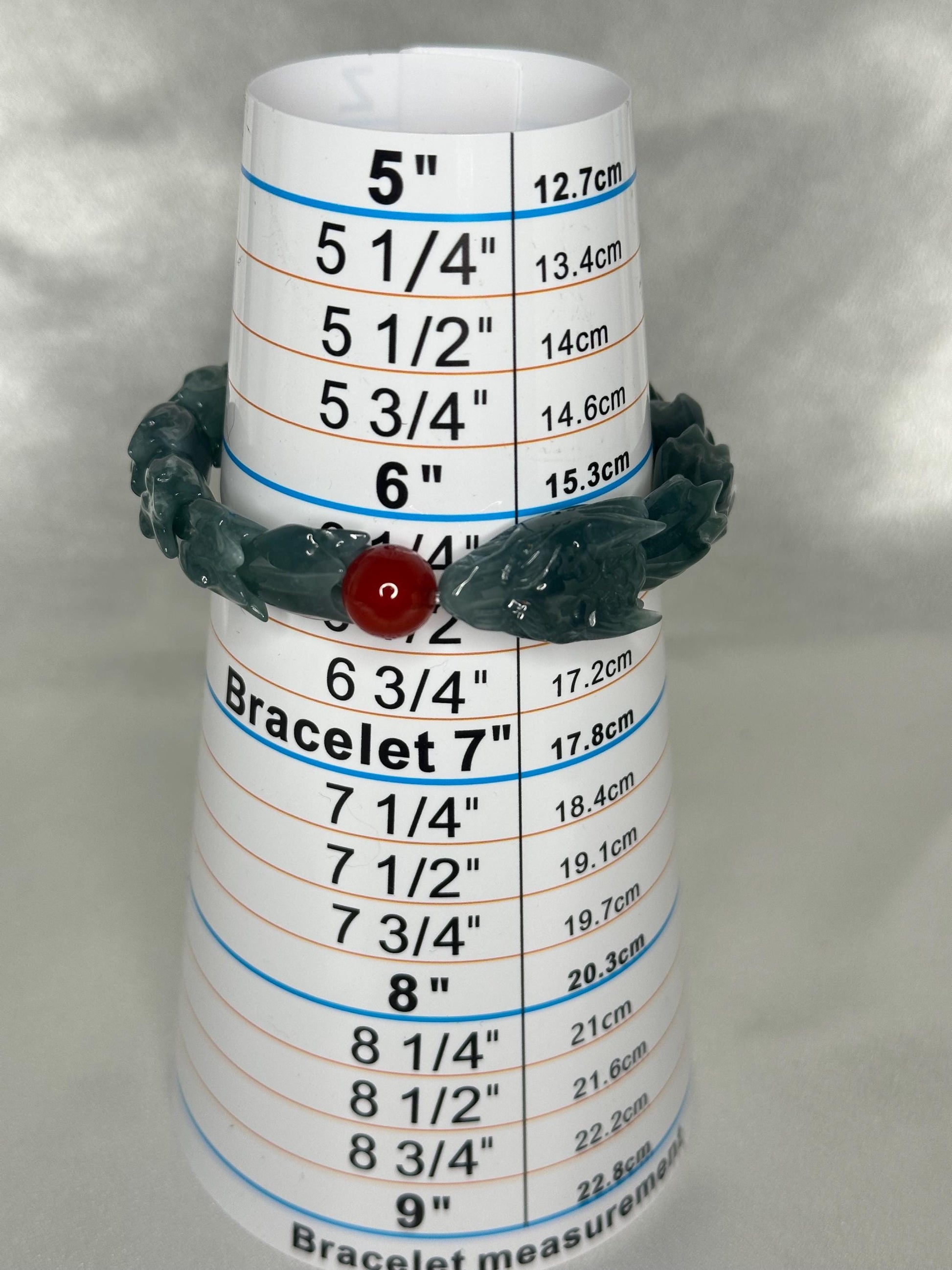 Blue Water Jade Bracelet with Red Agate Ouroboros Dragon Bead, Crystal for Renewal, Calm Energy, Protection & Spiritual Balance
