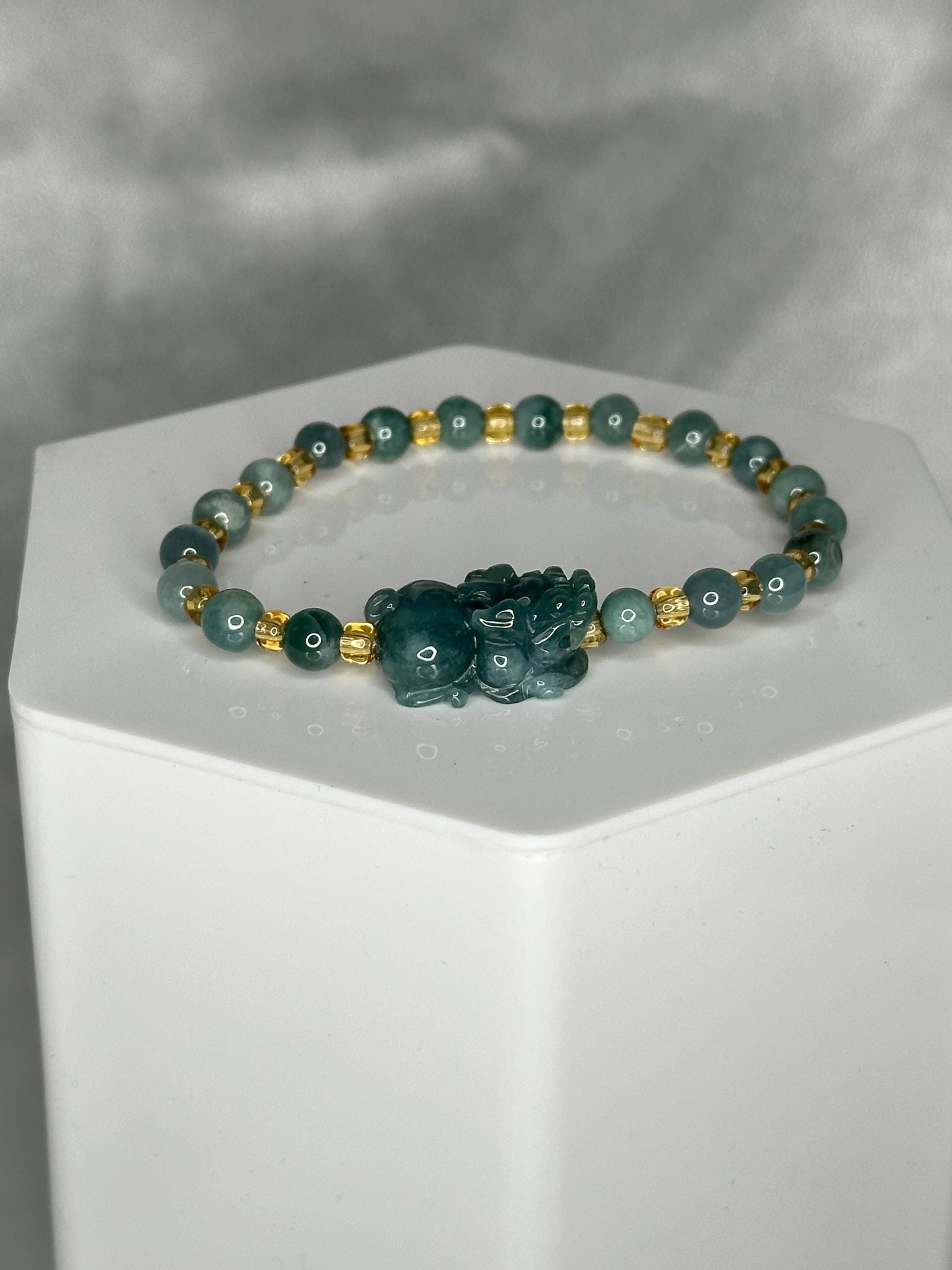 Guardian of Flow – Blue Water Jade Bracelet with Pixiu Charm for Prosperity, Protection & Calm Energy, Feng Shui Wealth Crystal Jewelry