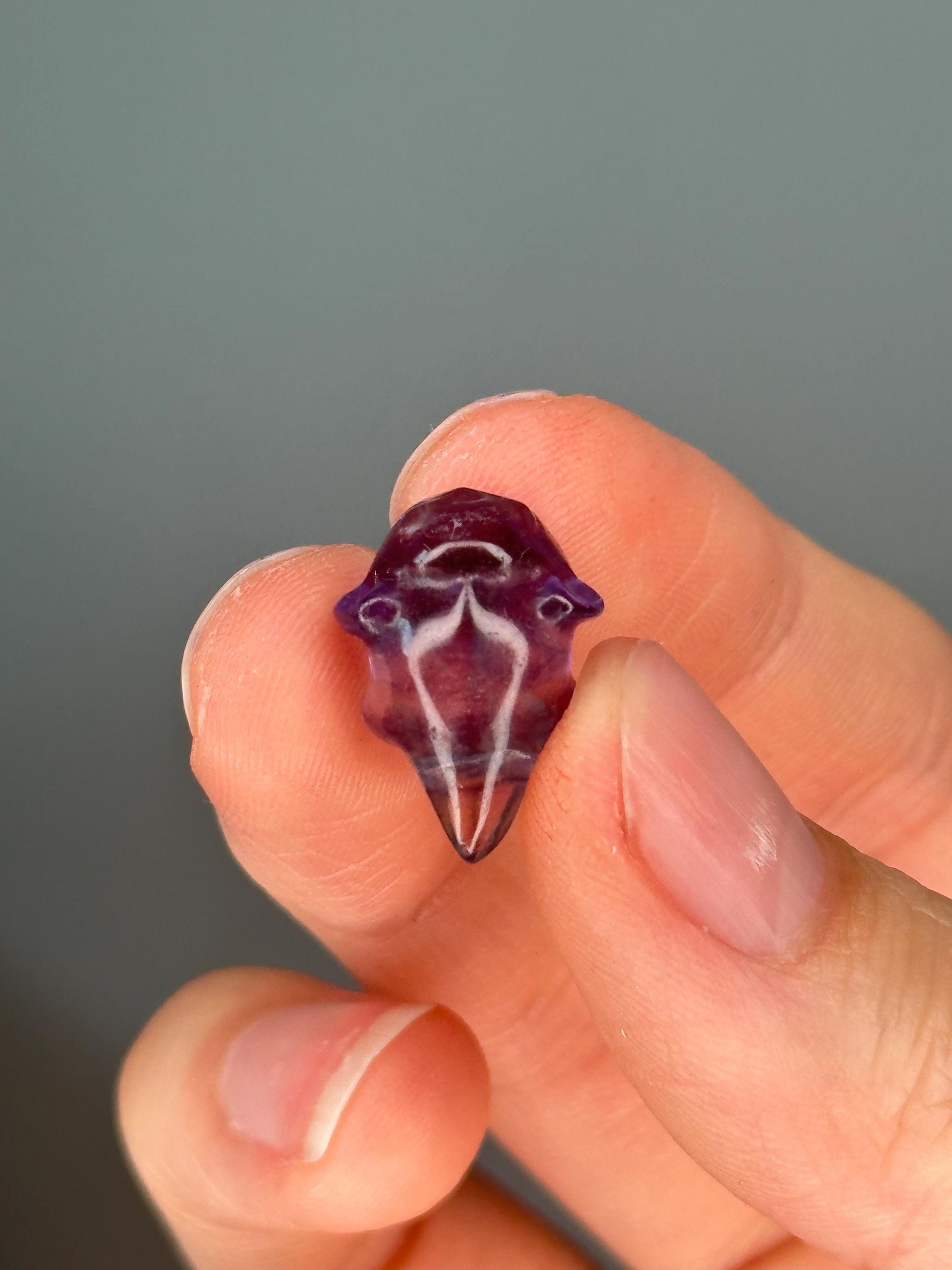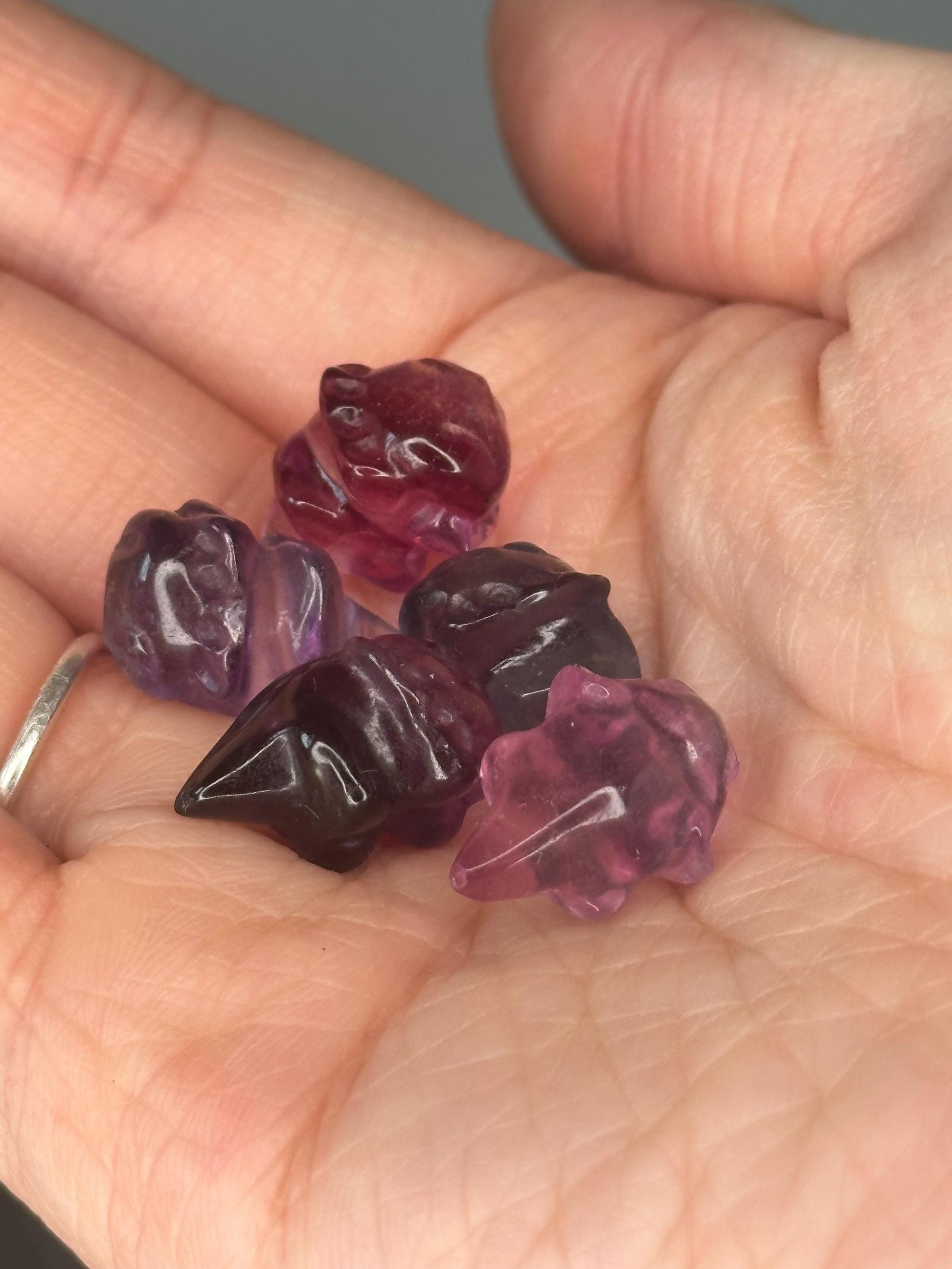 This tiny axolotl carving is full of charm, made from beautiful natural fluorite. Each one shows off a mix of green, purple, with delicate banding, no two are alike! A perfect pocket-sized companion for crystal lovers and axolotl fans alike.